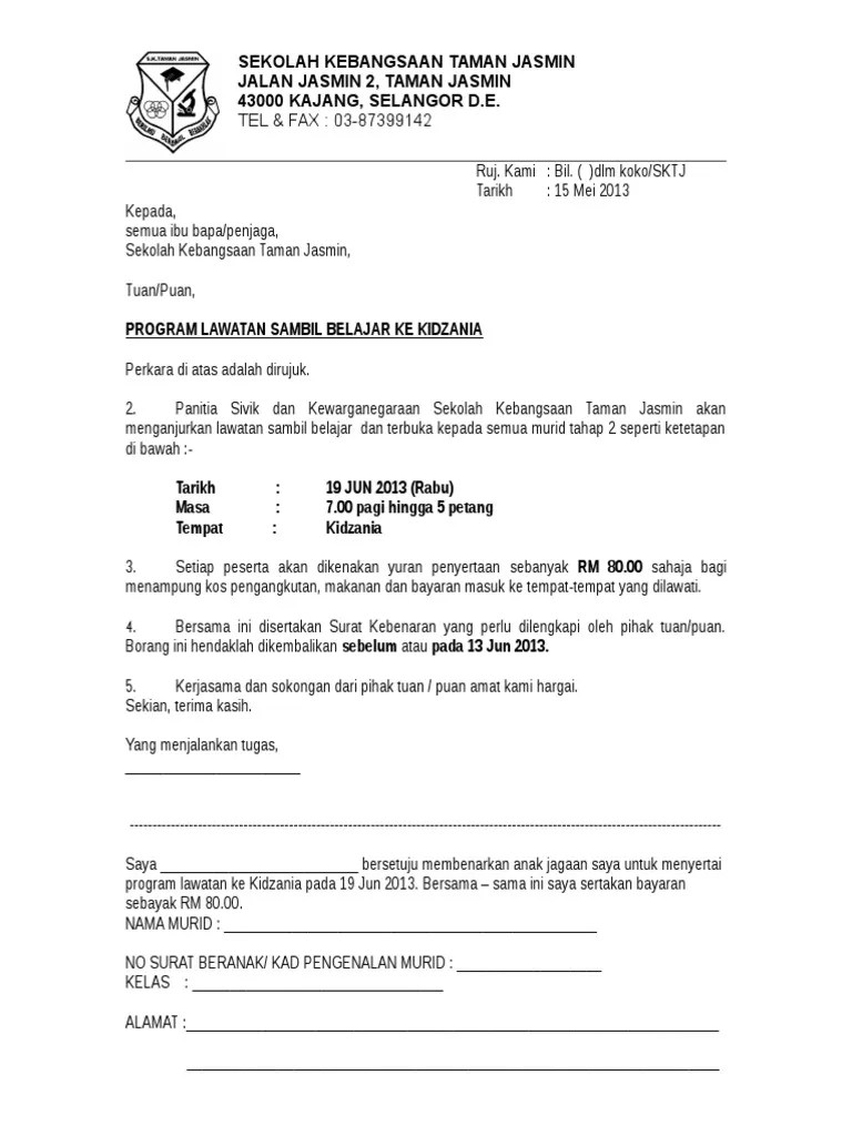 Surat Kebenaran Ibu Bapa Lawatan Sambil Belajar Pdf